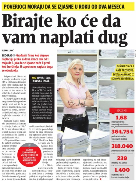 Грађани и фирме који наплаћују дугове преко судова имаће рок од 1. маја до 1. јула 2016. године да с...